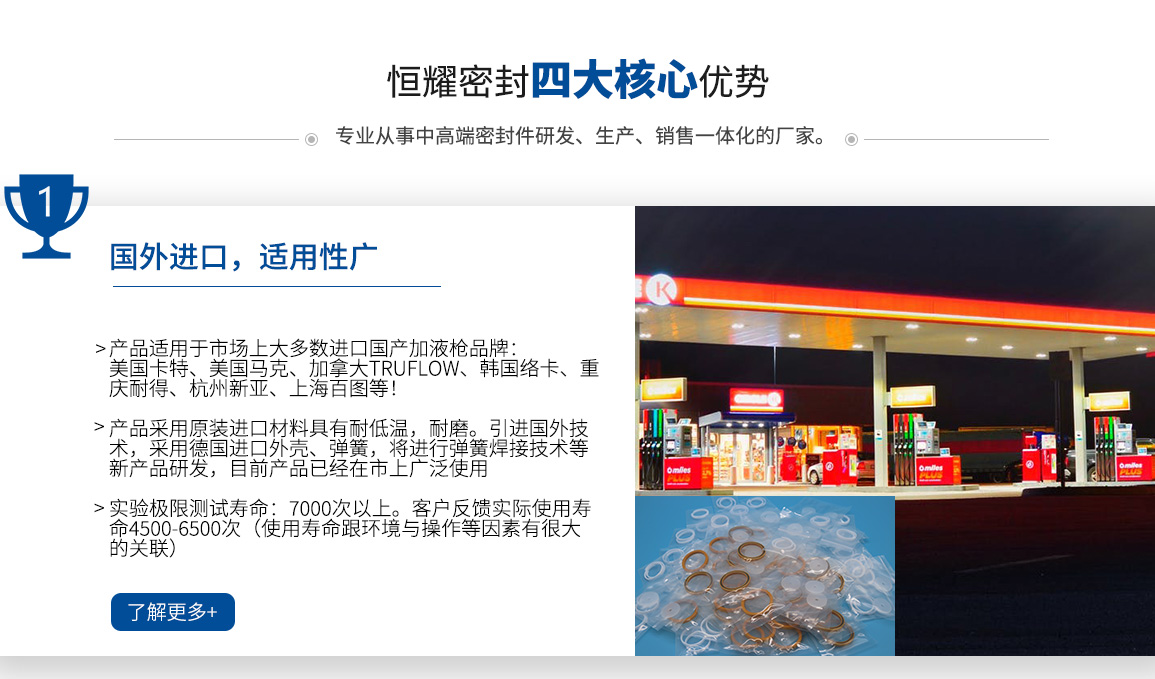 佛山市恒耀密封有限公司(香港恒耀科技有限公司)是一家從事高難度密封件研發、生產、銷售一體化的廠家。我們的理念:以質量求生存、以服務求發展、以誠信對待客戶。 在解決高速旋轉、超低溫、超高壓、超高溫、強腐蝕等及其苛刻的工況方面有著成熟的技術,先進的技術服務實力、團隊具備應對各種復雜工況密封系統的研發設計開發能力。我們的品質始終如一,給您的產品立于不敗之地,共同開發市場,我們的真誠服務,持續為您創造價值。 我們的產品廣泛應用于LNG、CNG、LH2低溫液態新能源設備、點膠機、機械手等自動化機械設備;環保型食品機械、灌裝機;低溫泵、計量泵、尿素泵、電磁閥、安全閥、高壓閥、噴射閥、溢流閥等泵...